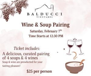 At Balducci's, we invite you to enjoy delicious food and award-winning wine among the rolling hills of our vineyards.