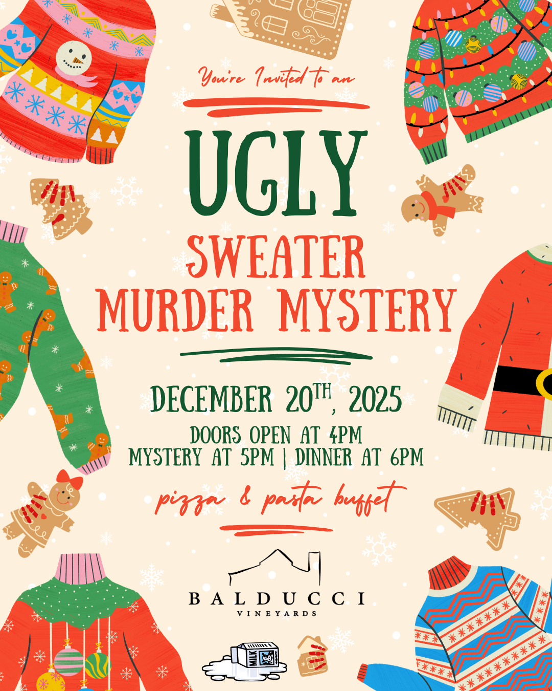 Join us for a festive and fun Ugly Sweater Murder Mystery night!